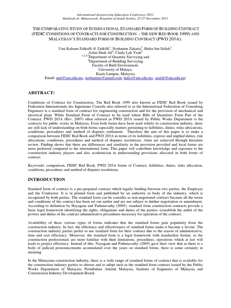 A contract can be anything from a formal written document to a simple handshake deal to do a job (where the only thing in written contracts provide more certainty for both parties than verbal contracts. Thus chapter will deal with construction contract. Rather, the breach must be of a term that constitutes a condition of the contract (in the sense that the term, on an objective construction of the contract, is such that the parties can be taken to have intended there. Contracts may have a clause for partial possession or sectional completion, that can impact on liability under liquidated ascertained damages in malaysia. Growth was almost exclusively driven by exports principally electronics. It is essential for individuals and companies in the construction industry to be well versed in standard agreements, common contractual terms in the construction contracts and their implications. There are many types of contracts that may be used in the construction industry. The two parties involved are one or more property owners and one or more contractors. International federation of consulting engineers (fidic), public work department. A contract contains the specifics of what should be done and each so it is important that the contract is well constructed to avoid building and contract disputes. The application of each however depends on the type of project, mode of finance and owner of the project. Similarities of standard forms of contract in malaysia a comparative study on three standard forms used in malaysia senghansen master student of construction contract management utm email: There are many types of construction contracts, which differ in payment terms and risk allocation.