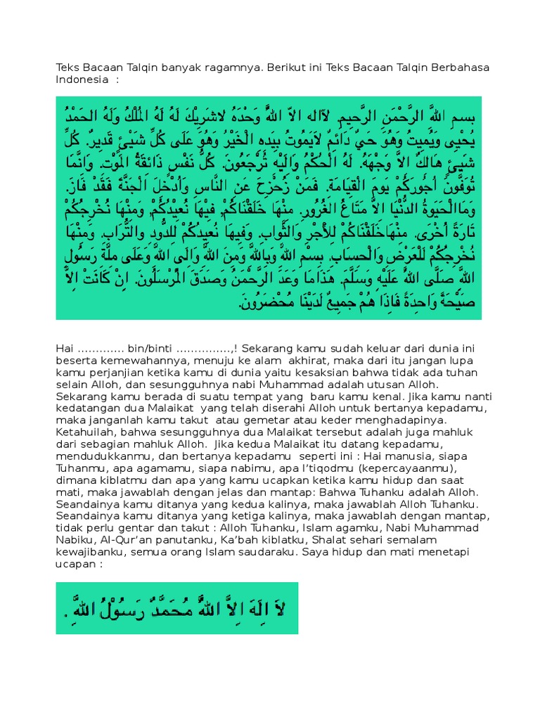 Penaungdato haji wan mohamaddato sheikh abdul aziz. Posted on 27 september 2012by pakcikli00. Maksud (dalam rumi) talkin yang selalu dibaca utk orang yg meninggal dunia. Baik datangnya dari allah swt dan kesalahan semua datang dari saya. Dari malam 1 hingga 15 ramadhan: