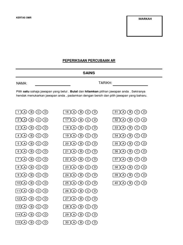 Kertas Omr 40 Soalan - P E Pe Rlk S Aa N Membaca Bmk3a Membacamekanis Mentalis Intensifdanekstensif B Membacaretorik Constraktit Intruksionaldanemosional C Membacasenyap Lantang Bersuaradanbersama Sama Pdf Document - Borang omr 40 soalan via moshimonchi 11 aplikasi terhangat masa kini untuk pdpc pak21 mudah via kertas percubaan pt3 pendidikan islam 2019 edisi jimat via smobookstores bank soalan kbat spm bahasa inggeris form 4 you may also like.. 6 downloads 60 views 111kb size. Pastikan tanda hitam itu cukup 40. Documents similar to borang omr 40 soalan. Kertas latihan ini mengandungi 40 soalan percubaan. Jabatan siasatan jenayah kuala lumpur menahan empat guru termasuk seorang wanita.